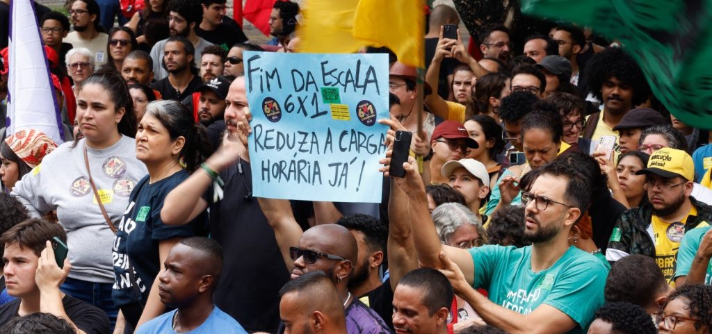 O fim da escala 6×1 é apoiado por 64% dos brasileiros, enquanto 33% se dizem contra a mudança e 3% não sabem responder, de acordo com pesquisa Datafolha. Foram ouvidas 2.002 pessoas com 16 anos ou mais em 113 municípios de todo o país. Para o total da amostra, a margem de erro é de dois pontos percentuais, para mais ou menos, e o nível de confiança é de 95%. Nos dias 12 e 13 de dezembro, o instituto perguntou se a carga de trabalho em que o limite máximo para quem tem carteira assinada é de 44 horas semanais e seis dias por semana deve ser reduzida. 70% disseram acreditar que a jornada ideal teria de ser de cinco dias, 17% falam em seis e 7% mencionam quatro. A jornada diária máxima de até oito horas é apontada como ideal por 82% e apenas 7% sugerem de oito a 12 horas. A redução também tem mais apoio entre os entrevistados que se declaram de cor preta (72%) e parda (66%) do que entre os de cor branca (59%) —esses grupos têm margens de erro, respectivamente, de cinco, três e quatro pontos. O debate sobre a escala 6×1 ganhou força com uma PEC da deputada Erika Hilton (PSOL-SP). A proposta é a adoção de uma jornada de 36 horas semanais, dividida em quatro dias.