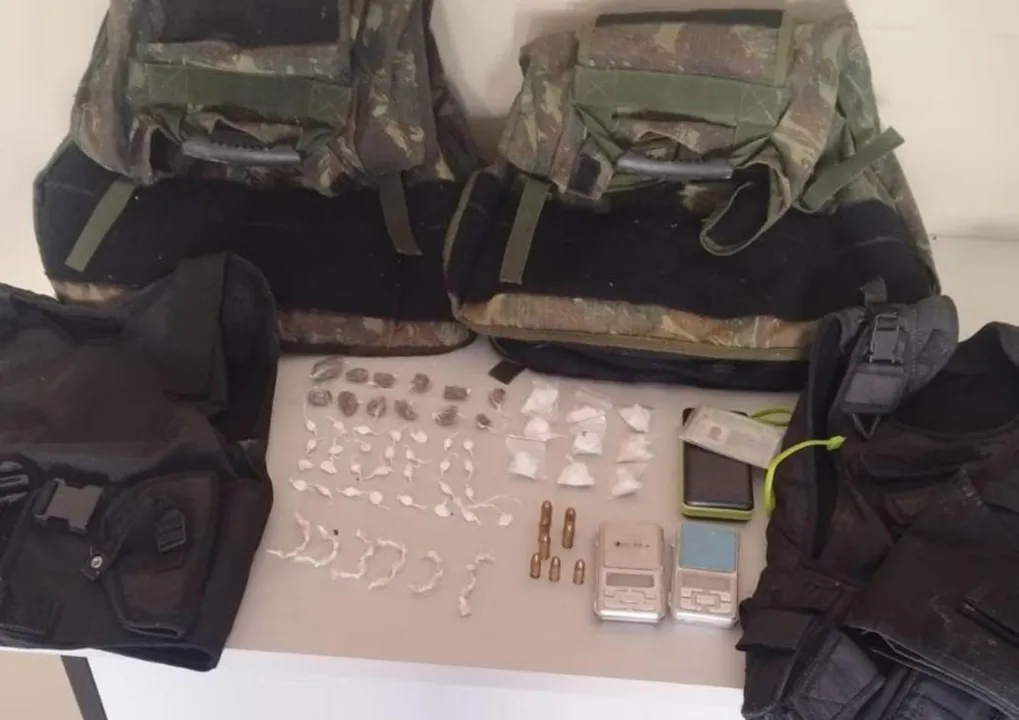 Uma ação policial realizada na manhã de domingo, 11, em Una, no sul da Bahia, apreendeu drogas, coletes balísticos e munições, em um acampamento montado por traficantes. Segundo informações da Polícia Militar, durante realização de policiamento especializado, agentes da Cipe/Cacaueira, em apoio à guarnição da 71ª CIPM, foram acionados para averiguar denúncia de suspeitos armados na área de mata, naquela localidade. No local, os policiais avistaram um grupo de homens que, ao perceberem a presença da guarnição, fugiram. Após varredura, foram encontradas duas placas e cinco capas de coletes balísticos, munições dos calibres 40 e 9mm, duas balanças de precisão, sete porções de crack, nove de cocaína e 12 de maconha. O material apreendido foi apresentado na Delegacia Territorial que atende a região.