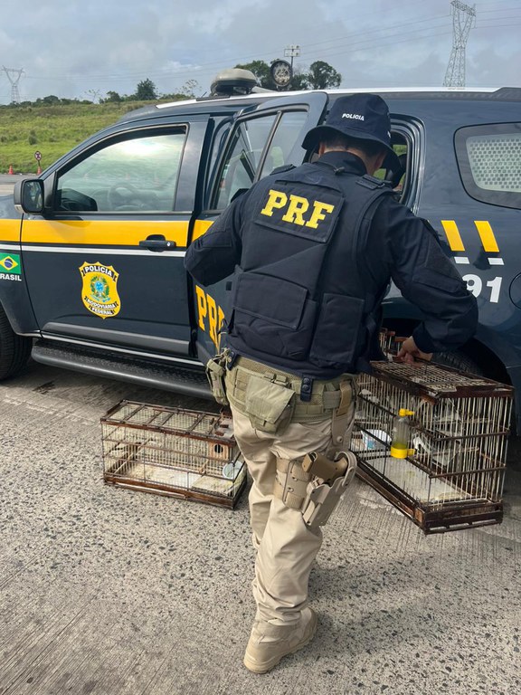 Na manhã de quinta-feira (28), policiais rodoviários federais faziam fiscalização na praça de pedágio de Simões Filho (km 599 da BR 324), quando deram ordem de parada ao condutor de um Renault/Logan. Ao se aproximarem do carro, os policiais verificaram que no interior do automóvel havia duas gaiolas com pássaros aprisionados. Foram encontrados um azulão e dois canários da terra. Vale destacar que o Azulão tem sido alvo constante do tráfico, sendo capturados e levados para todo o país e até para o exterior por conta de sua beleza exuberante e seu canto diferenciado. Dada às circunstâncias, o motorista de 65 anos de idade não apresentou qualquer documentação para criação legal dos animais. Ele autuado por crime ambiental e em seguida, foi lavrado o Termo Circunstanciado de Ocorrência (TCO) e o infrator responderá na Justiça por sua conduta assim que for intimado. Os pássaros foram encaminhados aos cuidados do órgão ambiental CETAS, em Salvador.