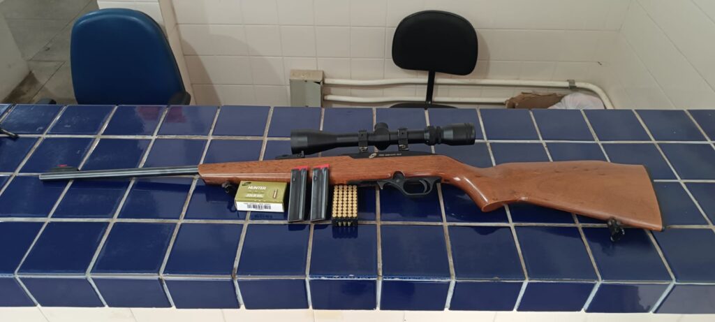 Uma arma de fogo foi apreendida nesta quinta-feira (1º), durante abordagem no Posto de Fiscalização de Tanhaçu. Segundo policiais militares da Companhia Independente de Polícia Rodoviária (CIPRv), a arma foi encontrada no interior do veículo. Dentro de uma mala, um Rifle calibre 22LR, além de 50 cartuchos e dois carregadores vazios. Ao ser questionado, o condutor disse que a arma possuía registro porém não tinha o documento de porte. Diante do exposto, o condutor, juntamente com o material, foram apresentados na Delegacia de Polícia Civil de Brumado para adoção das medidas legais cabíveis. INFORMAÇÕES: SUDOESTE ACONTECE.