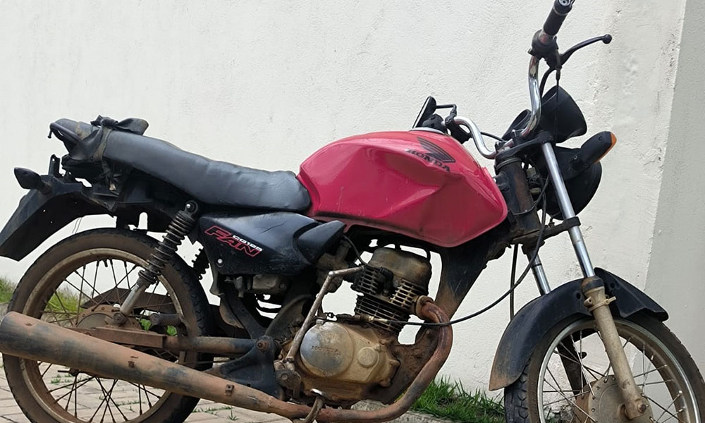 Uma motocicleta com sinais identificadores adulterados foi apreendida por policiais da Companhia Independente de Polícia Rodoviária de Brumado na manhã de quarta-feira, 4 de março, na BA-632, nas proximidades do município de Encruzilhada, no sudoeste da Bahia. De acordo com informações da polícia, a guarnição realizava ações de fiscalização dentro do plano operacional da unidade quando avistou uma motocicleta Honda CG 125 Fan, de cor vermelha, circulando sem placa de identificação nas proximidades do povoado de Barreiro. Durante a abordagem, os policiais constataram que o veículo apresentava os números do chassi e do motor pinados, o que caracteriza adulteração dos sinais identificadores. Não foi possível identificar o possuidor da motocicleta no momento da ação. O veículo foi encaminhado para a Delegacia Territorial de Encruzilhada, onde foram adotadas as medidas legais cabíveis. A motocicleta apresentada é uma Honda CG 125 Fan, de cor vermelha, sem placa de identificação.