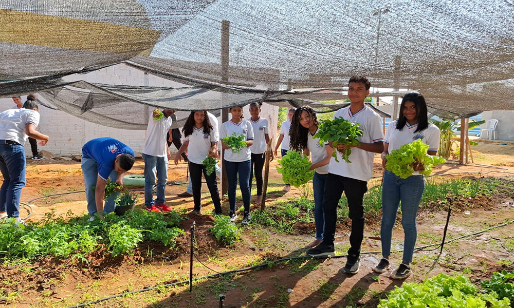 No Colégio Estadual Monsenhor Turíbio Vila Nova, em Bom Jesus da Lapa, estudantes do programa Educa Mais Bahia estão vivenciando uma experiência transformadora com o projeto Horta Agroecológica na Escola. A iniciativa envolve 110 alunos da 2ª série do Ensino Médio em Tempo Integral, com atividades práticas. Implantada, inicialmente, como uma oficina, a proposta ganhou força com a produção de hortaliças destinadas à alimentação escolar. O Educa Mais Bahia é uma política pública estadual que amplia a jornada escolar com foco na aprendizagem, por meio de atividades pedagógicas integradas ao currículo. No projeto da horta, os estudantes aprendem, na prática, conteúdos de biologia, química, matemática e ecologia, enquanto desenvolvem responsabilidade social e ambiental, orientados por um monitor. “É gratificante observar o respeito e o engajamento dos adolescentes”, destacou o engenheiro agrônomo Romendes Marques de Souza, que também orienta na gestão da produção, do programa Educa Mais Bahia. A colheita já abastece o restaurante escolar e os alimentos são destinados exclusivamente ao consumo dos alunos. Para a professora Aliciene Costa Oliveira, da disciplina Estação do Saber I, “a horta representa uma vivência fora da sala de aula, que une ciência, consciência ambiental e mudança de hábitos alimentares”. O sucesso da produção levou à ampliação do projeto, que agora estuda melhorias no sistema de irrigação e no viveiro da escola. Além do cultivo de alimentos como alface, coentro, rúcula, beterraba e batata-doce, os alunos aprendem a calcular área, volume e peso dos canteiros, compreendendo os custos e etapas do processo produtivo. “É muito bom participar. A gente aprende a plantar, cuidar do solo e produzir de forma mais saudável”, contou a estudante Maria Clara dos Santos Gomes, de 17 anos.