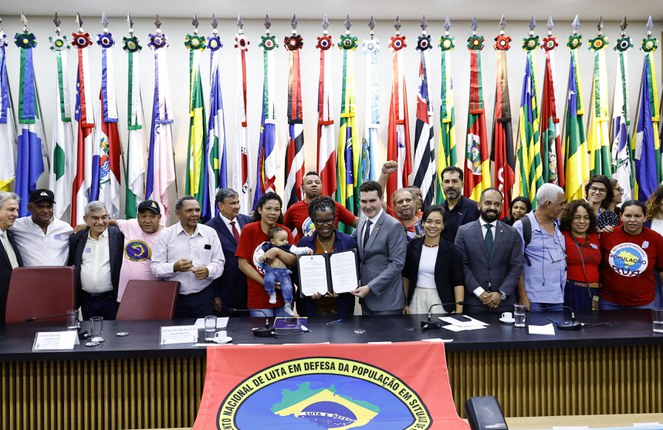 O Minha Casa, Minha Vida irá destinar, a partir desta terça-feira (22/4), 3% das moradias de empreendimentos subsidiados pelo Fundo de Arrendamento Residencial (FAR) para pessoas em situação de rua ou com trajetória de rua. O Governo Federal financiará 100% das habitações. A medida vai priorizar 38 municípios, incluindo todas as capitais brasileiras e cidades com mais de mil pessoas cadastradas como “sem moradia”, conforme os dados mais atualizados do CadÚnico. A portaria que oficializou a iniciativa inédita é fruto da parceria entre o Ministério das Cidades e os ministérios dos Direitos Humanos e da Cidadania, do Desenvolvimento e Assistência Social, Família e Combate à Fome e o do Trabalho e Emprego. O ministro das Cidades, Jader Filho, participou da cerimônia de assinatura da portaria e comemorou mais uma conquista do Minha Casa, Minha Vida. “Acima de tudo, o dia de hoje é um dia de demonstração. Temos a certeza de que esse é o primeiro passo, mas não será o único, em direção à garantia de moradia digna para pessoas de rua neste país. Contem conosco para seguir transformando a situação dos mais vulneráveis no Brasil”, disse o ministro. Também participaram da solenidade a ministra dos Direitos Humanos e Cidadania, Macaé Evaristo, e o ministro do Desenvolvimento e Assistência Social, Família e Combate à Fome, Wellington Dias. A ministra Macaé agradeceu o empenho do Ministério das Cidades. “Sempre tivemos total apoio do ministro Jader para enquadrar as pessoas em situação de rua no Minha Casa, Minha Vida. E isso é importante para que a gente continue avançando na busca por direitos para uma população que tem eles diariamente violados”, afirmou a ministra. Além das novidades do Minha Casa, Minha Vida, foi assinado o Acordo de Cooperação Técnica das Cozinhas Solidárias da Rua. O documento busca implementar oito cozinhas solidárias destinadas à população em situação de rua. Cada unidade contará com o acompanhamento de um agente de economia solidária. A iniciativa visa garantir segurança alimentar e vínculos comunitários nas periferias urbanas, junto às populações mais vulneráveis.