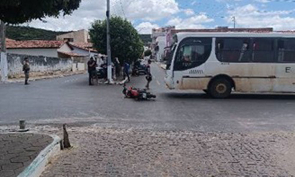 Um acidente de trânsito envolvendo uma motocicleta e um ônibus foi registrado no início da tarde desta quarta-feira (11) no centro de Palmas de Monte Alto, no sudoeste da Bahia. A ocorrência foi atendida por uma guarnição da Polícia Militar por volta das 12h59. Segundo informações da PM, a colisão aconteceu no cruzamento das ruas Teodulins de Albuquerque e João Ribeiro da Silva. No local, o motociclista, um homem de 28 anos, relatou que o motorista do ônibus teria avançado o cruzamento, provocando o acidente. O condutor do ônibus, de 30 anos, apresentou outra versão e afirmou que o motociclista trafegava em alta velocidade no momento da colisão. Com o impacto, o motociclista sofreu lesões leves no punho e suspeita de torção no tornozelo. A motocicleta também apresentou danos materiais. Após a verificação da situação, os policiais constataram que os veículos estavam com a documentação regular. Como houve divergência nas versões apresentadas pelos envolvidos, ambos foram orientados a procurar a Delegacia de Polícia para registro da ocorrência e adoção das providências legais.
