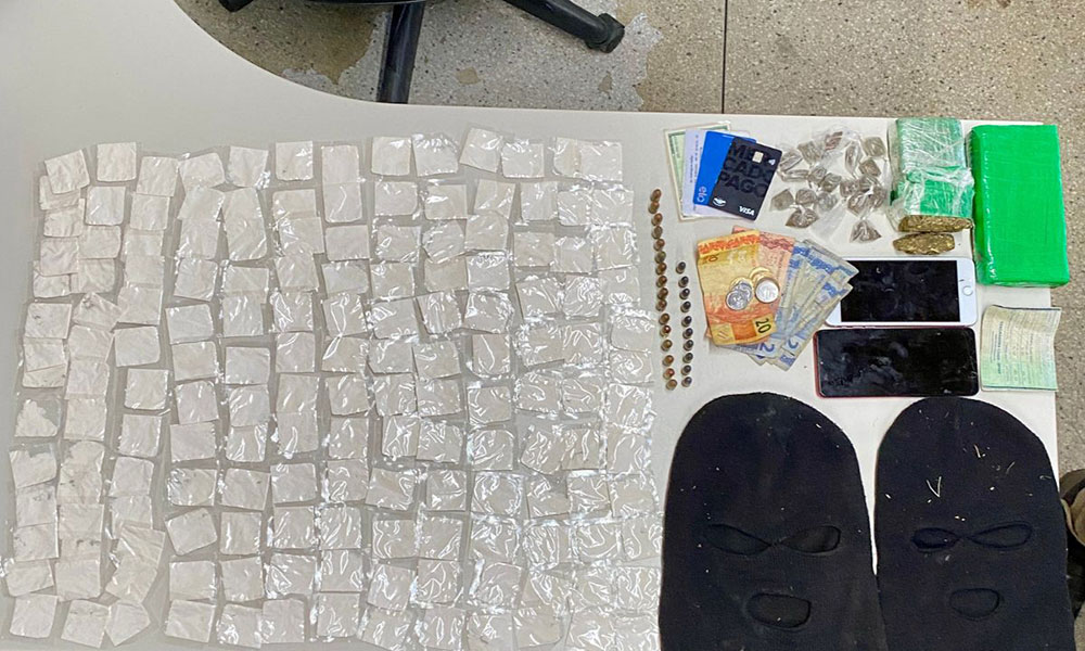 Porções de cocaína, dois tabletes de maconha, munições, uma touca ninja e cartões de credito foram apreendidos sexta-feira (26) na cidade de Oliveira dos Brejinhos. De acordo com a 4ª CIPM, por volta das 6h30, a Guarnição do Pelotão de Emprego Tático Operacional (PETO), o 4º Pelotão de Oliveira dos Brejinhos e a Rondesp, em ação contínua na busca por supostos autores de um homicídio ocorrido no povoado de Beira Rio, após informações colhidas no local, chegaram à um endereço denunciado. Quando os indivíduos avistaram as viaturas, empreenderam fuga em direção a uma área de mata. Foi feita uma incursão com o intuito de alcançá-los, porém sem êxito. Ao retornar ao local, foi realizada uma busca minuciosa em todo o perímetro e foi encontrada uma sacola contendo substâncias análogas a maconha e cocaína, munições, dinheiro e aparelhos celulares. Todos os materiais apreendidos foram apresentados na delegacia de Oliveira dos Brejinhos.
