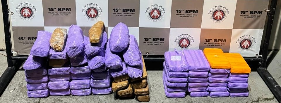 Guarnições do 15º BPM e da CIPT Rondesp Sul apreenderam 65kg de maconha e cocaína, na noite da última sexta-feira (15), em Itabuna, região sul do estado. Os militares participavam da Operação Garra de Arquimedes, quando receberam uma denúncia anônima de que indivíduos estariam efetuando o transporte de drogas nas imediações do semi-anel rodoviário, região da BR-101. Com base em informações referentes aos criminosos, rondas foram efetuadas e três caixas encontradas pelos militares. Nenhum suspeito foi localizado. No interior dos recipientes, foram apreendidos 25 tabletes de cocaína, totalizando 25kg da droga, e 39 de maconha, com um total de 40 kg. Apenas em 2024, foram apreendidos 348 kg com a participação direta do 15° batalhão. Todo o material apreendido foi encaminhado para a delegacia que atende à região, onde a ocorrência foi registrada.