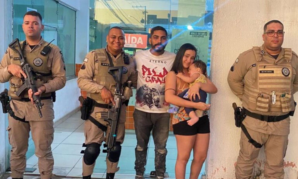 Policiais militares da 89ª CIPM salvaram, no final da tarde de sábado (27), a vida de um bebê de um ano de idade que havia se engasgado no município de Teixeira de Freitas, no extremo sul do estado. Os PMs, que trabalham em Mucuri, realizavam a condução de um indivíduo detido para ser apresentado à 8ª Coorpin, em Teixeira de Freitas, quando, ao passarem pelo bairro Jardim Caraípe, foram avistados e chamados por um casal em desespero, que relatou que o pequeno filho deles havia se engasgado. Diante de uma situação tão desesperadora para a família, já que o menininho estava desmaiado, os militares iniciaram o conjunto de técnicas de socorrismo e desobstrução de vias aéreas conhecido como manobra de Heimlich, conseguindo fazer a criança respirar novamente e voltar a si, acordando. “Após o garotinho voltar à consciência, levamos toda a família rapidamente para uma unidade de saúde especializada no atendimento pediátrico”, revelou o soldado Valdinei de Pinas, comandante da guarnição. “A médica que atendeu o bebê destacou que o atendimento pré-hospitalar que ele recebeu foi essencial para salvar a vida dele”, contou emocionado.
