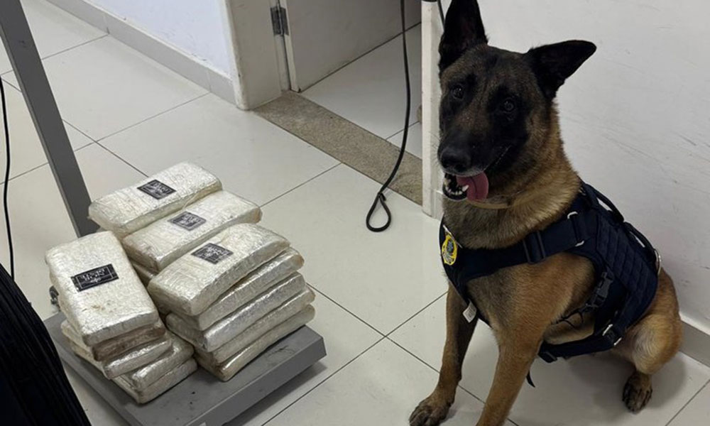 PRF e cão policial apreendem mais de 22 kg de drogas dentro de ônibus em Vitória da Conquista
