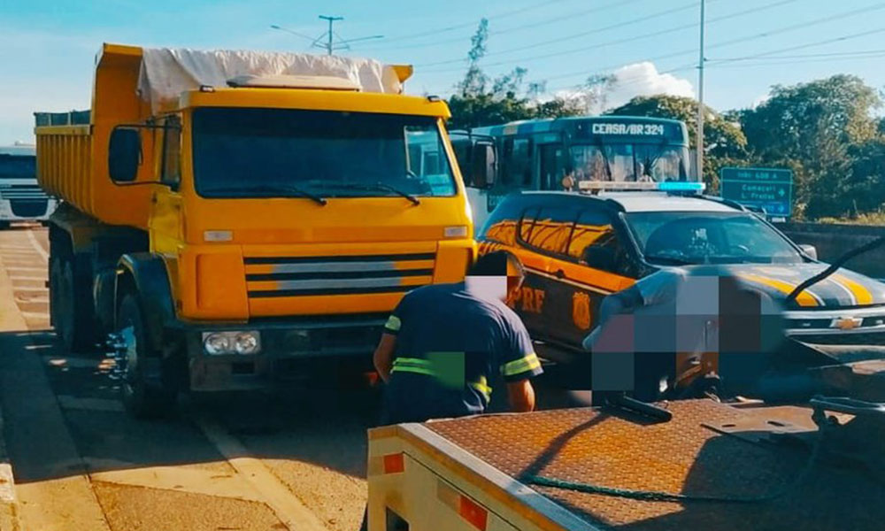Policiais rodoviários federais flagraram um caminhão transitando na rodovia com diversas irregularidades de trânsito. A ação foi registrada na manhã desta terça-feira (11), durante fiscalização de segurança viária no KM 608 da BR 324, trecho do município baiano de Simões Filho (BA). Os Policiais patrulhavam a rodovia quando abordaram o veículo VW/16.200 e durante os procedimentos de vistoria, a equipe flagrou outras irregularidades no veículo. O caminhão encontrava-se com o licenciamento atrasado, sem o equipamento tacógrafo, pneu estepe (socorro) ‘careca’. Além disso, o condutor era inabilitado e não usava o cinto de segurança. Ele também foi autuado por não conseguir comprovar o período de descanso obrigatório conforme determina a legislação vigente, visto que o caminhão não possuía o equipamento (tacógrafo). Diante das infrações de trânsito apresentadas, os Policiais emitiram 7 notificações previstas na Lei 9.503/97 do Código de Trânsito Brasileiro (CTB). O veículo foi removido ao pátio conveniado e só será liberado após a completa regularização.