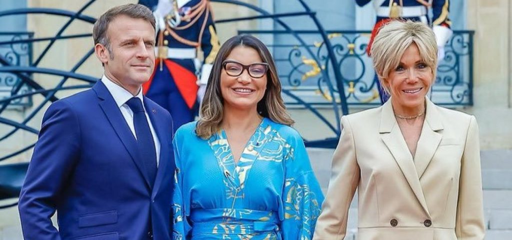 A primeira-dama, Janja da Silva, foi recebida na última sexta-feira (26) pelo presidente da França, Emmanuel Macron, e pela esposa, Brigitte, em Paris. Janja integra a comitiva oficial do governo brasileiro que participará da cerimônia de abertura das Olimpíadas de Paris. O ministro do Esporte, André Fufuca (PP-MA), e o embaixador brasileiro na França, Ricardo Neiva Tavares, também integram o grupo que representa o governo do Brasil em Paris. Emmanuel Macron e Brigitte oferecem nesta sexta uma recepção aos chefes de estado e de governo que acompanharão a abertura dos Jogos Olímpicos 2024. No sábado (27), Janja participará da cerimônia de apresentação do vídeo “Juntos somos imbatíveis”, realizado com atletas olímpicos em apoio à “Aliança Global contra a Fome e a Pobreza” e do lançamento da campanha Europa, da Embratur e do Sebrae. No último dia 11, Lula disse que Janja o representaria nos Jogos Olímpicos de Paris, em discurso durante evento em que recebeu no Palácio do Planalto atletas brasileiros que vão para as Olimpíadas de Paris. O presidente disse que foi convidado pelo presidente francês para comparecer à abertura, mas que não poderia ir.
