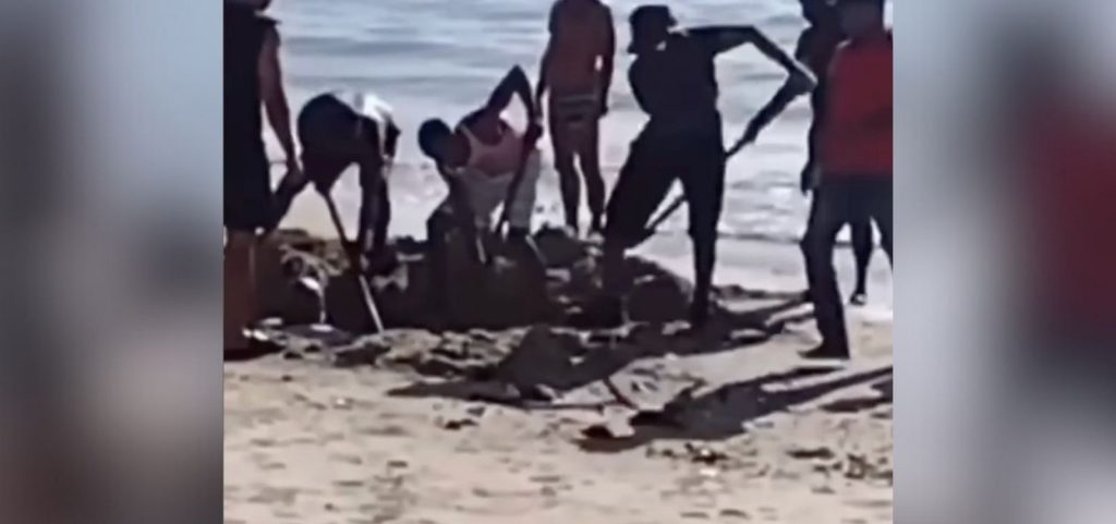 Uma cena inusitada chamou atenção de quem passava pela praia da Ribeira, em Salvador, na terça-feira (20). Um jovem se enterrou na areia na intenção de gravar um vídeo que viralizasse nas redes sociais, porém o rapaz, que não teve o nome divulgado, ficou preso. Pessoas que presenciaram a situação se mobilizaram para resgatar o jovem. Nas imagens, é possível ver homens com pás e até um outro cavando a areia com as próprias mãos para tirá-lo da areia. Informações sobre a saúde do jovem não foram encontradas.